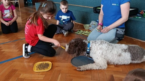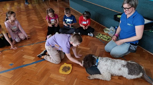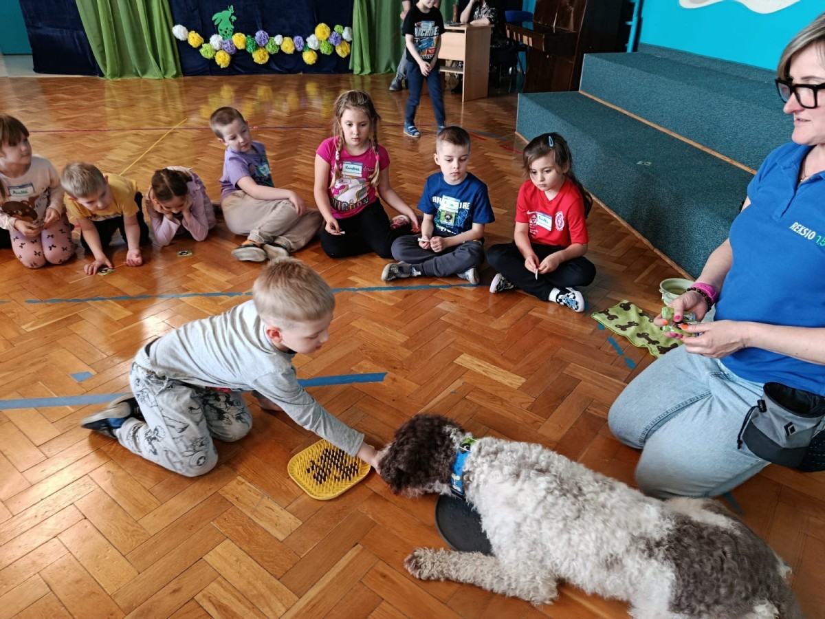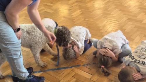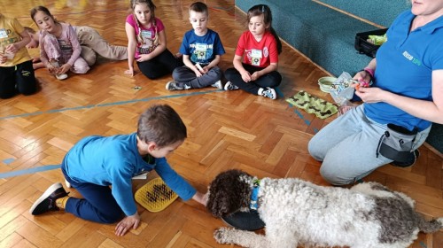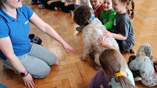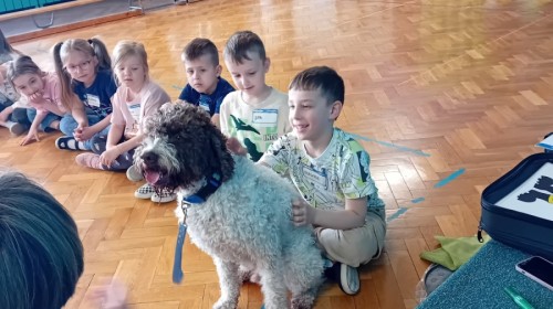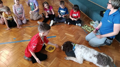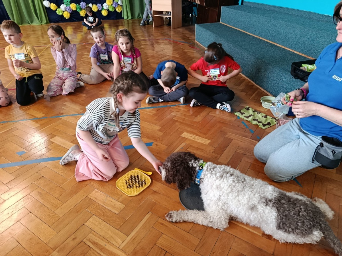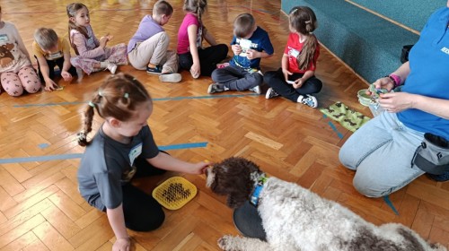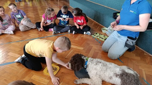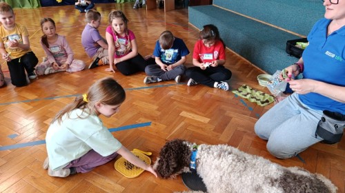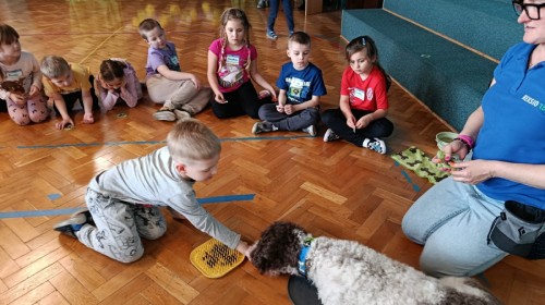 - Po zajęciach dzieci otrzymują: Dyplom Przyjaciela Psa, kodeksy, naklejki, kolorowanki.