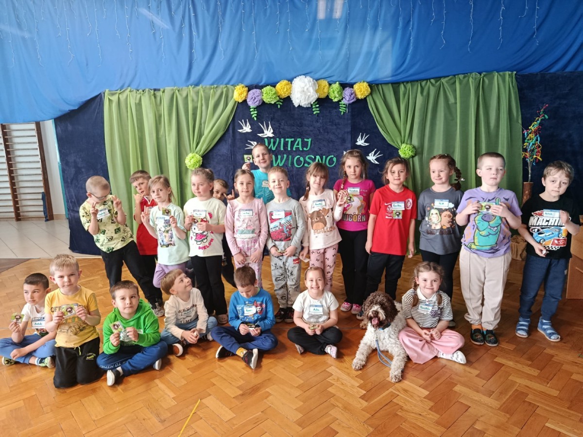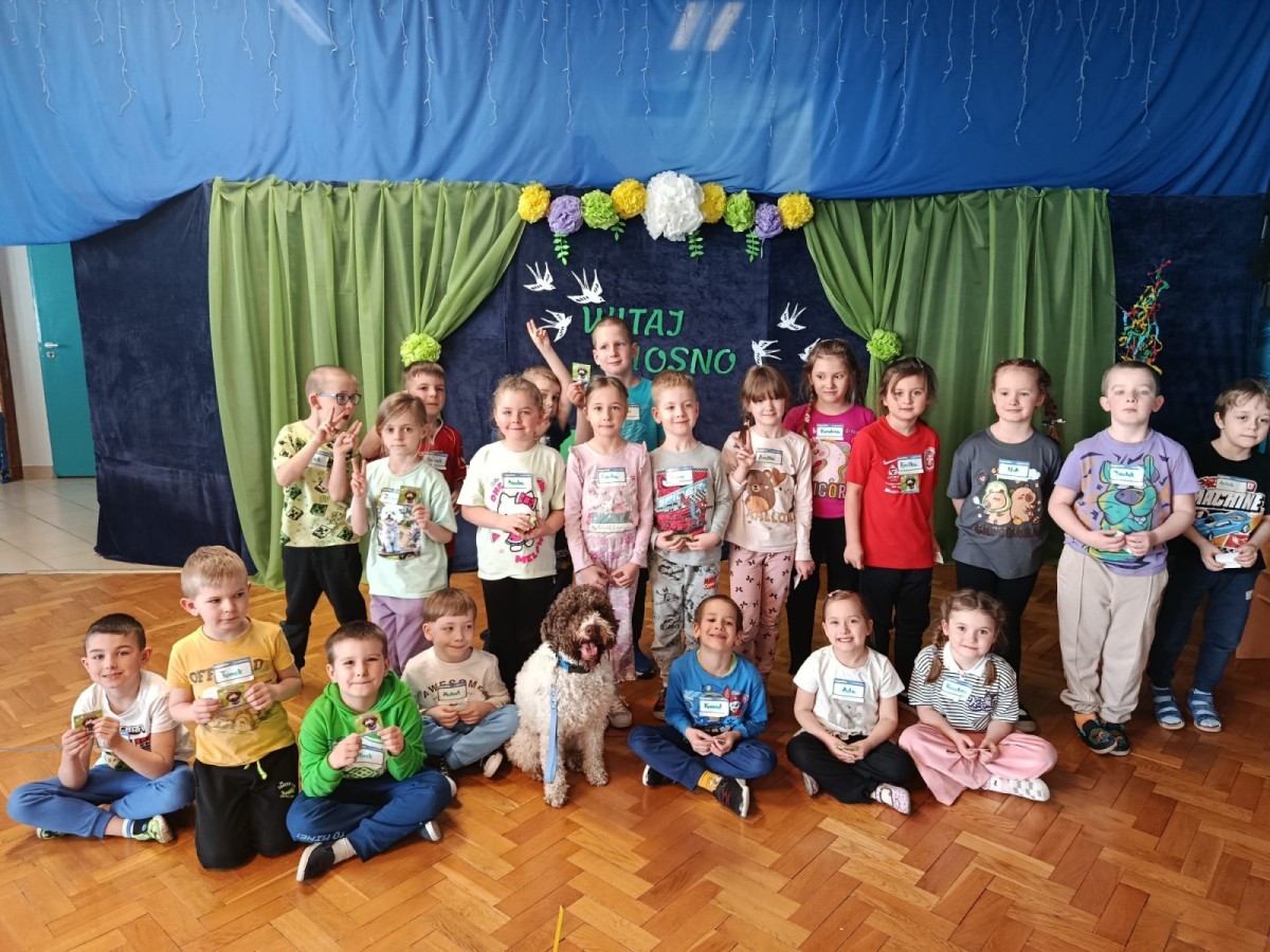 Na pamiątkę dzieci otrzymały Dyplom Przyjaciela Psa, kolorowankę oraz pamiątkową naklejkę naszego ulubieńca Fado.