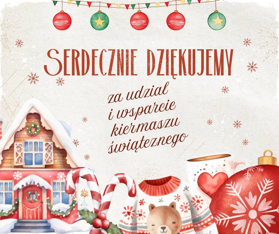 Serdecznie dziękujemy za wszystkie piękne i oryginalne ozdoby świąteczne, biżuterię, stroiki, pierniki, wianuszki i inne wyjątkowe rzeczy. Dziękujemy także za szczodre dary, wszystkie pieniądze zebrane podczas kiermaszu przekazane zostały do dyspozycji Rady Rodziców.