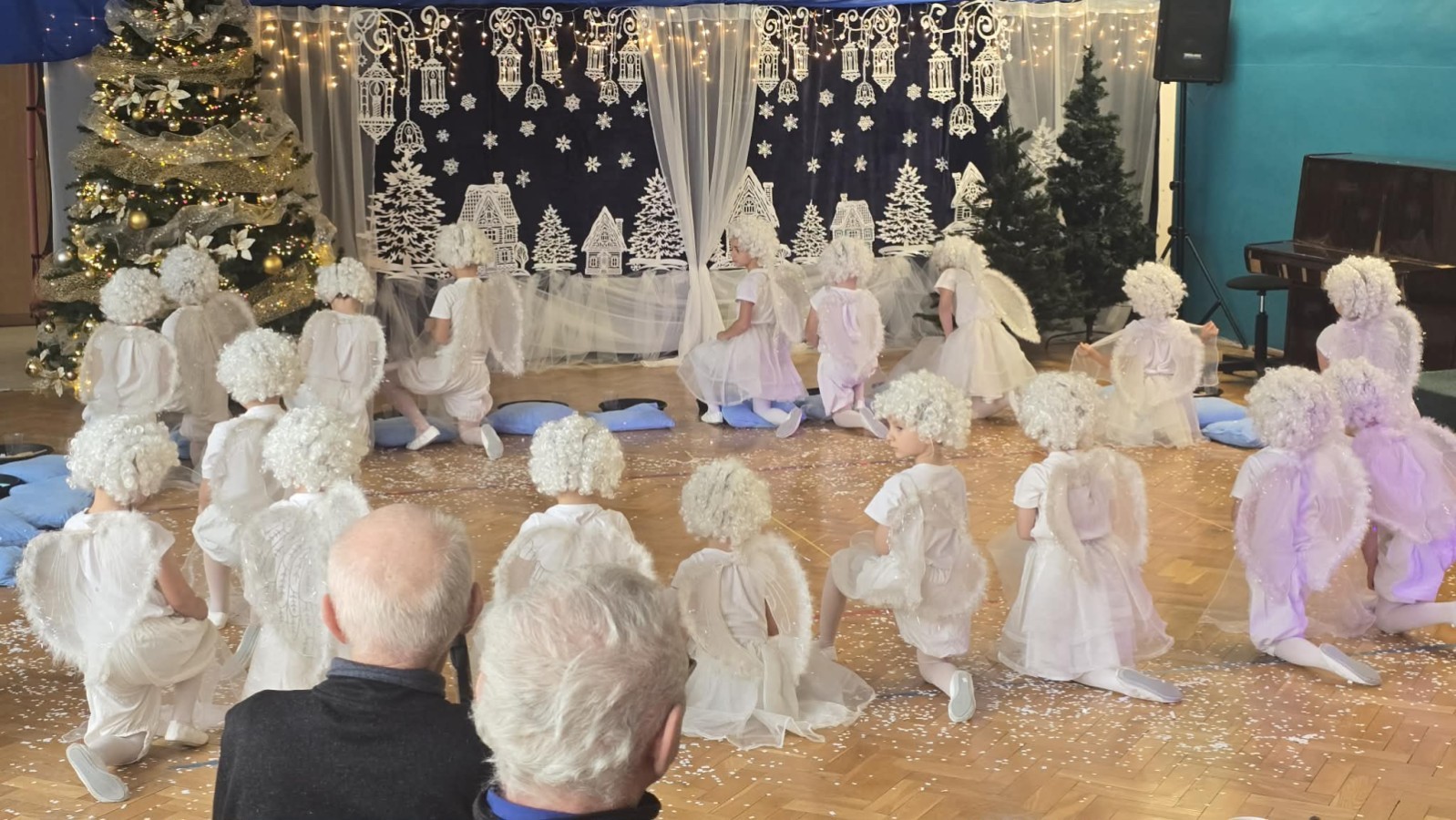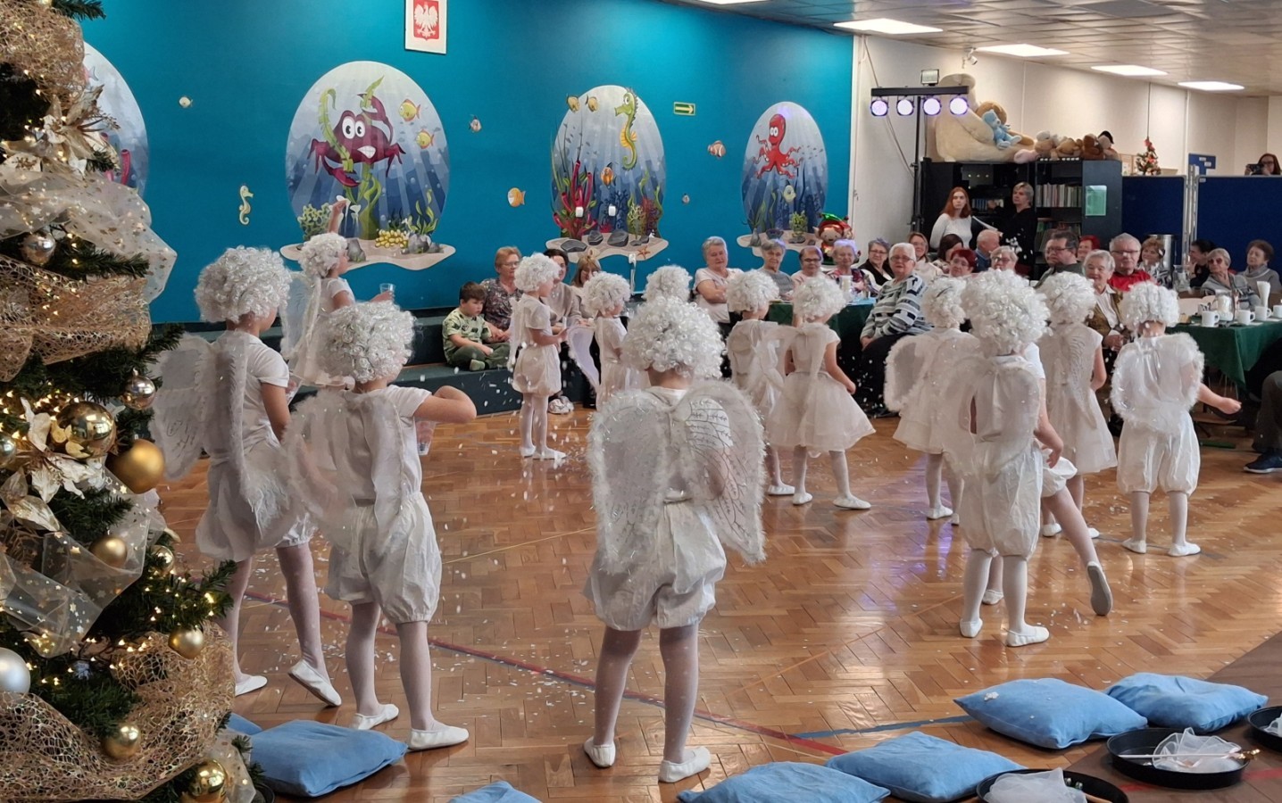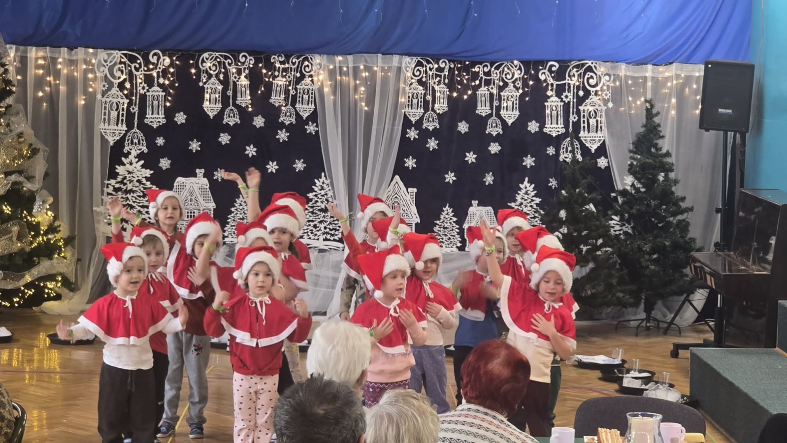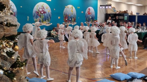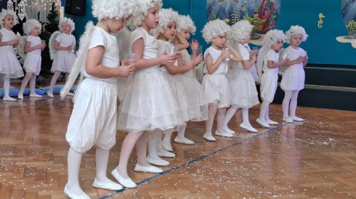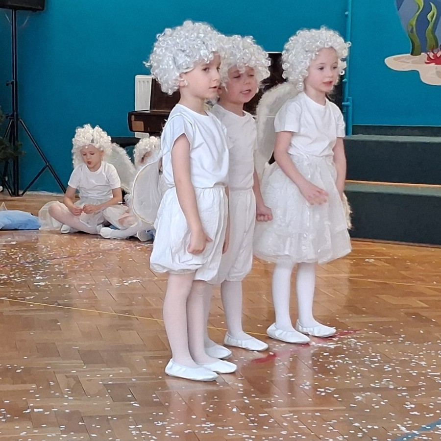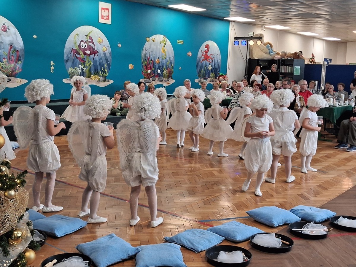 14 stycznia przedszkole odwiedzili mili goście, nasi seniorzy z Domu Dziennego Pobytu przy ul. Sterniczej oraz seniorzy, pracownicy naszego przedszkola. Grupa IV, VII i VIII przygotowały przepiękne pastorałki i piosenki, które wprowadziły naszych gości w cudowny, noworoczny nastrój. Grupa VI natomiast wystąpiła z przedstawieniem "Aniołki i choinka", a maluszki z grupy II obdarowały naszych wyjątkowych gości pachnącymi lawendą prezentami, w postaci własnoręcznie wykonanych mydełek. Nasze spotkanie zakończyło wspólne kolędowanie.