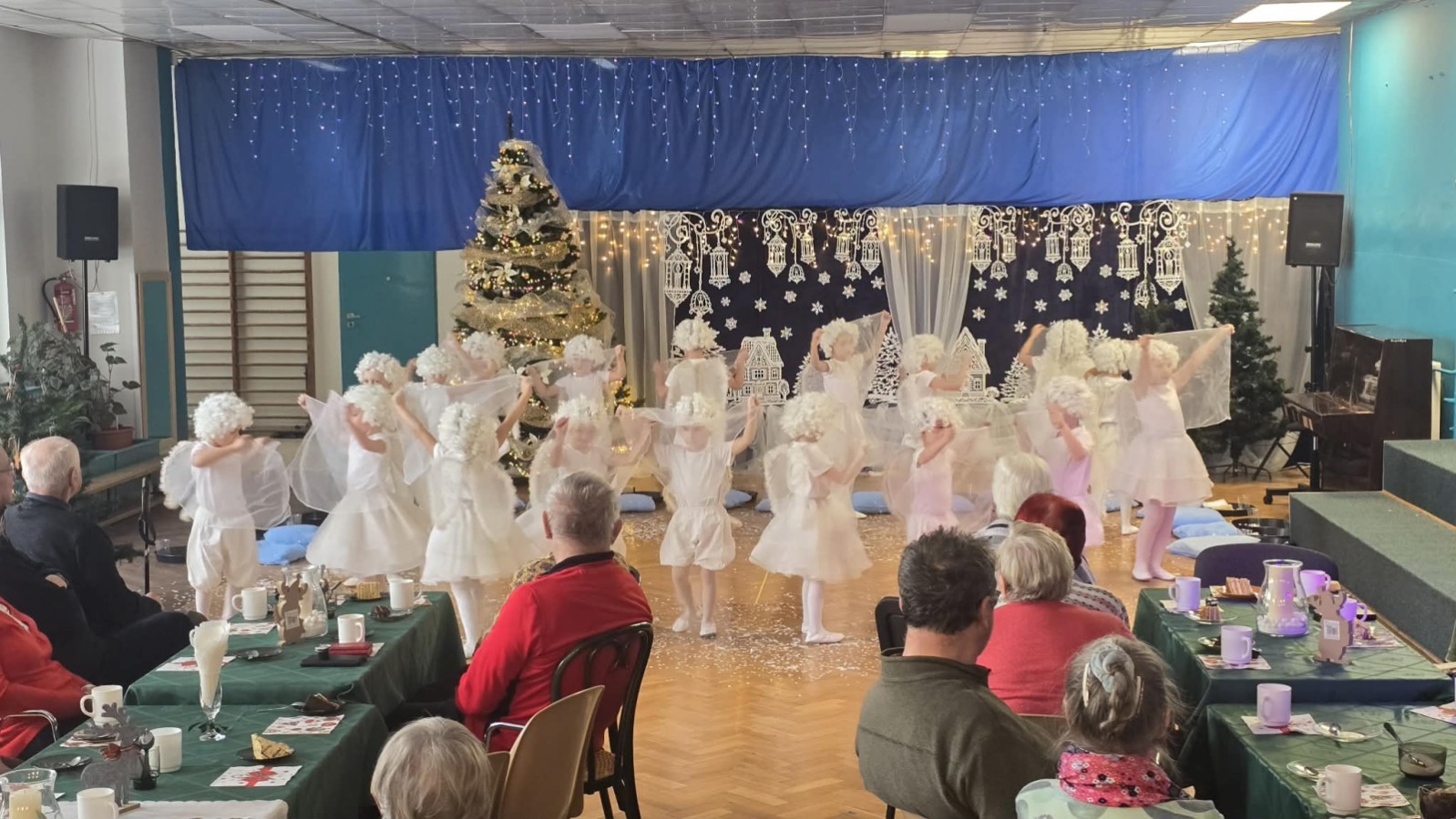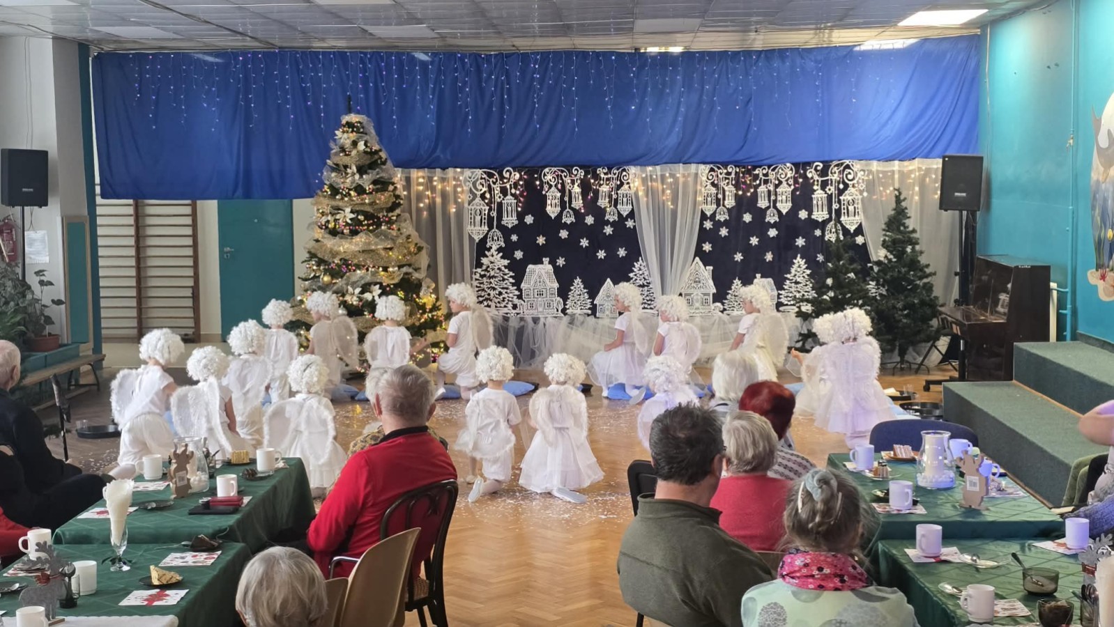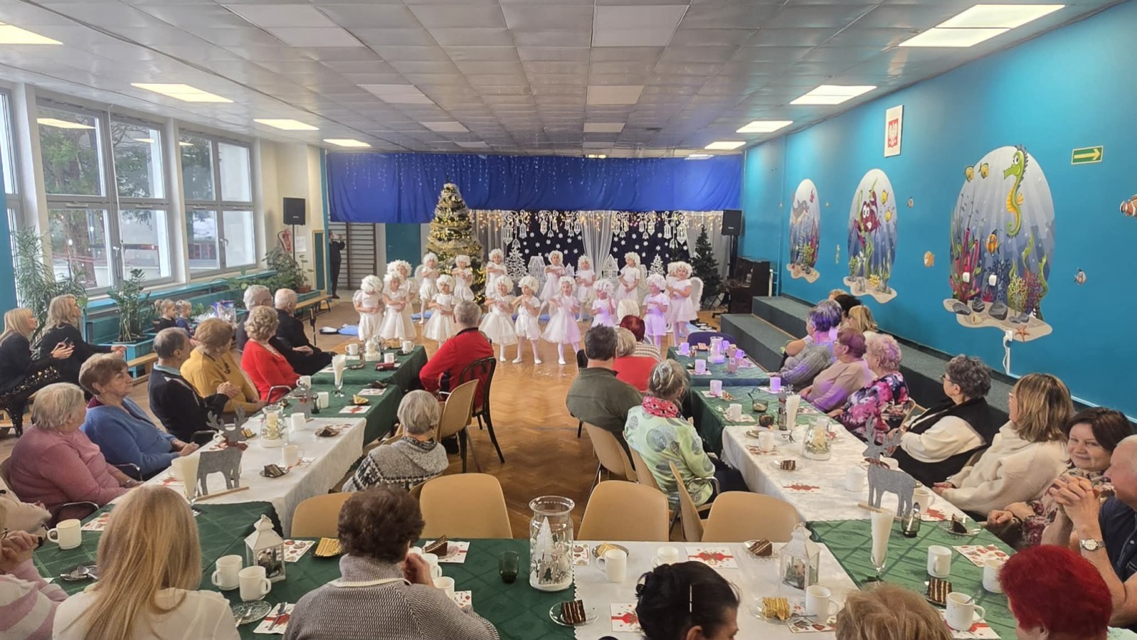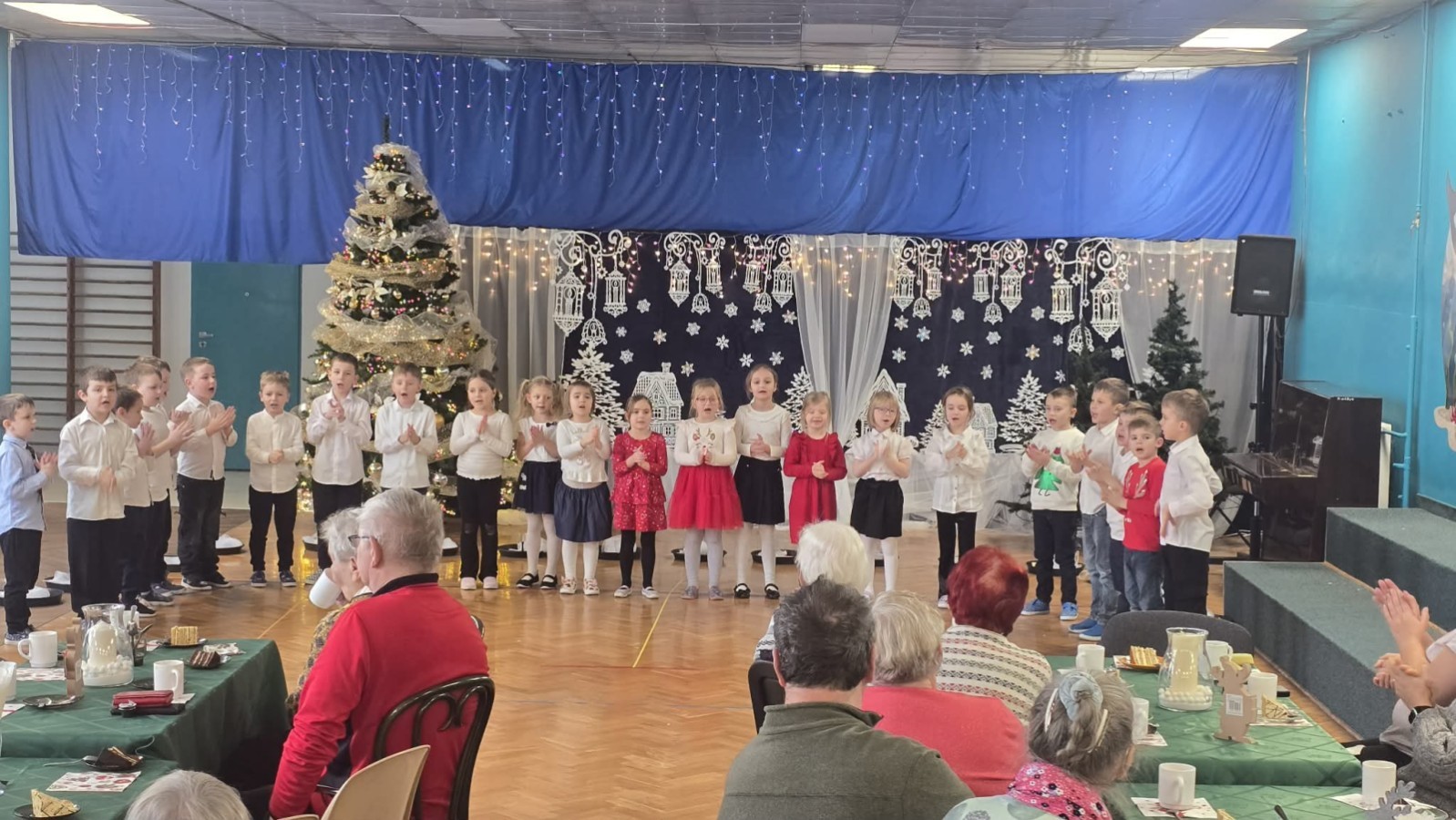 14 stycznia przedszkole odwiedzili mili goście, nasi seniorzy z Domu Dziennego Pobytu przy ul. Sterniczej oraz seniorzy, pracownicy naszego przedszkola. Grupa IV, VII i VIII przygotowały przepiękne pastorałki i piosenki, które wprowadziły naszych gości w cudowny, noworoczny nastrój. Grupa VI natomiast wystąpiła z przedstawieniem "Aniołki i choinka", a maluszki z grupy II obdarowały naszych wyjątkowych gości pachnącymi lawendą prezentami, w postaci własnoręcznie wykonanych mydełek. Nasze spotkanie zakończyło wspólne kolędowanie.