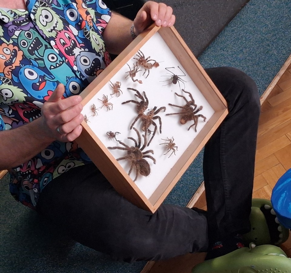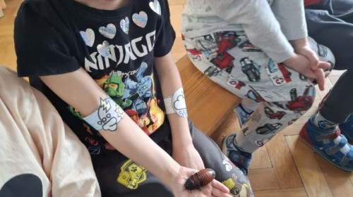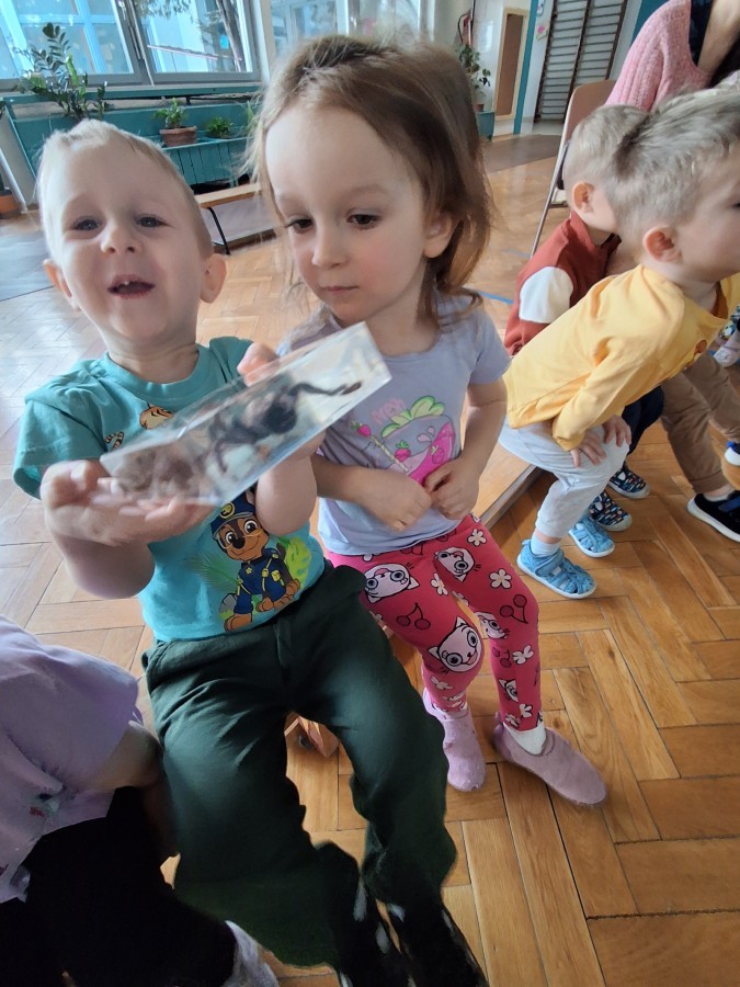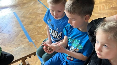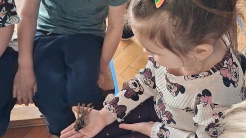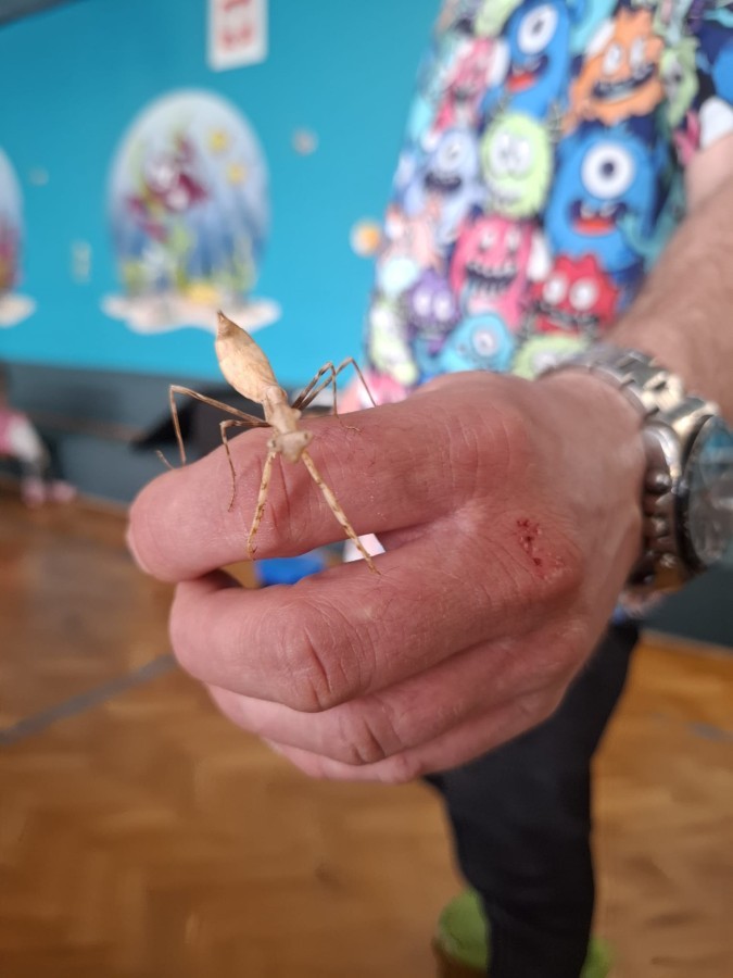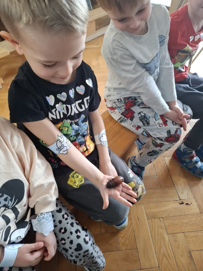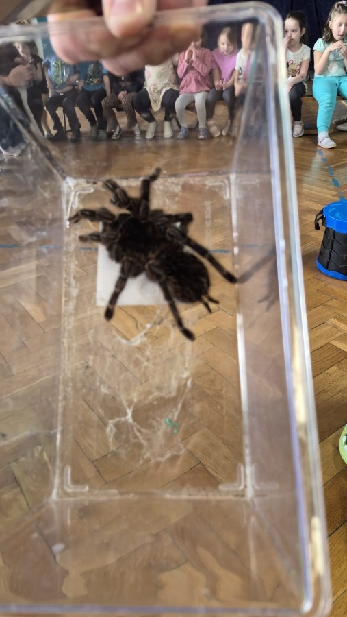 9 marca w naszym przedszkolu odbyły się kolejne, niezwykle ciekawe warsztaty przyrodnicze, prowadzone przez znakomitego Pana Macieja z "Owady i spółka". Tym razem dzieciaki miały okazję poznać bliżej pajęczaki. Na zajęciach zobaczyliśmy miłe i spokojne, choć jednocześnie jadowite i kosmate ptaszniki, podwójnie uzbrojone skorpiony oraz inne ciekawe pajęczaki. Mieliśmy możliwość poznać ich zwyczaje, dowiedzieliśmy się, jak długo żyją, co jedzą, a także w jaki sposób się bronią, aby samemu nie zostać zjedzonym. Do rąk mogliśmy wziąć niejadowite kosarze, amblypygi oraz przysmak pająków czyli karaczany.