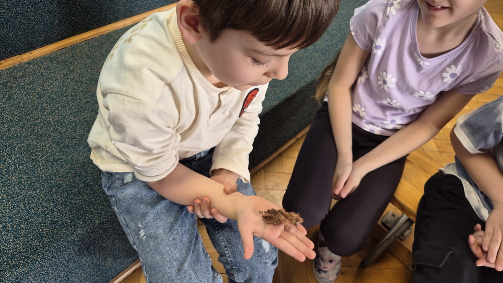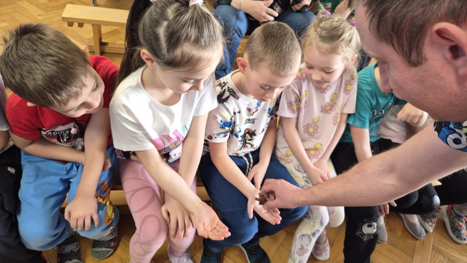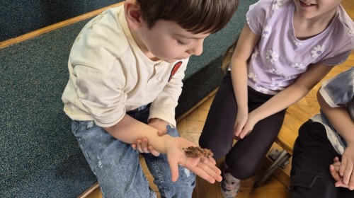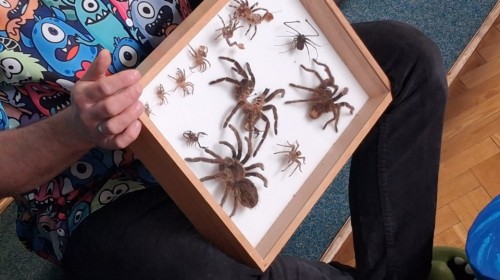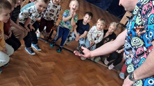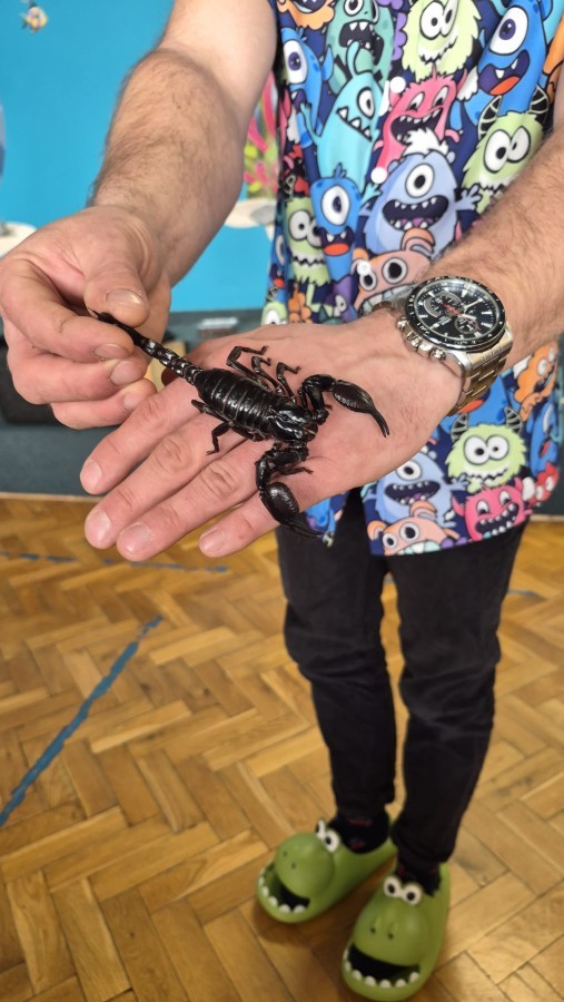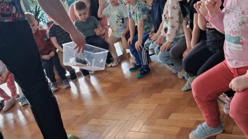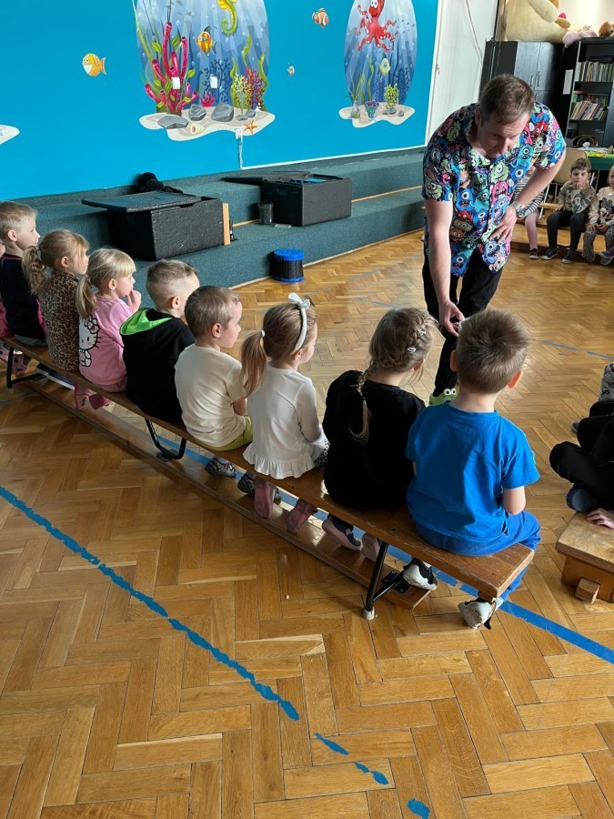 9 marca w naszym przedszkolu odbyły się kolejne, niezwykle ciekawe warsztaty przyrodnicze, prowadzone przez znakomitego Pana Macieja z "Owady i spółka". Tym razem dzieciaki miały okazję poznać bliżej pajęczaki. Na zajęciach zobaczyliśmy miłe i spokojne, choć jednocześnie jadowite i kosmate ptaszniki, podwójnie uzbrojone skorpiony oraz inne ciekawe pajęczaki. Mieliśmy możliwość poznać ich zwyczaje, dowiedzieliśmy się, jak długo żyją, co jedzą, a także w jaki sposób się bronią, aby samemu nie zostać zjedzonym. Do rąk mogliśmy wziąć niejadowite kosarze, amblypygi oraz przysmak pająków czyli karaczany.