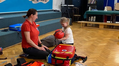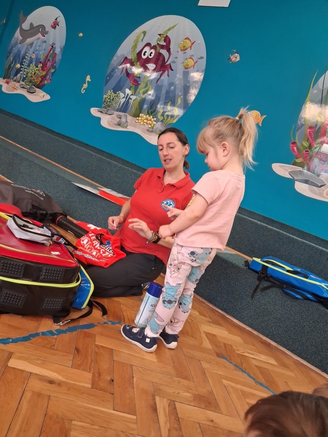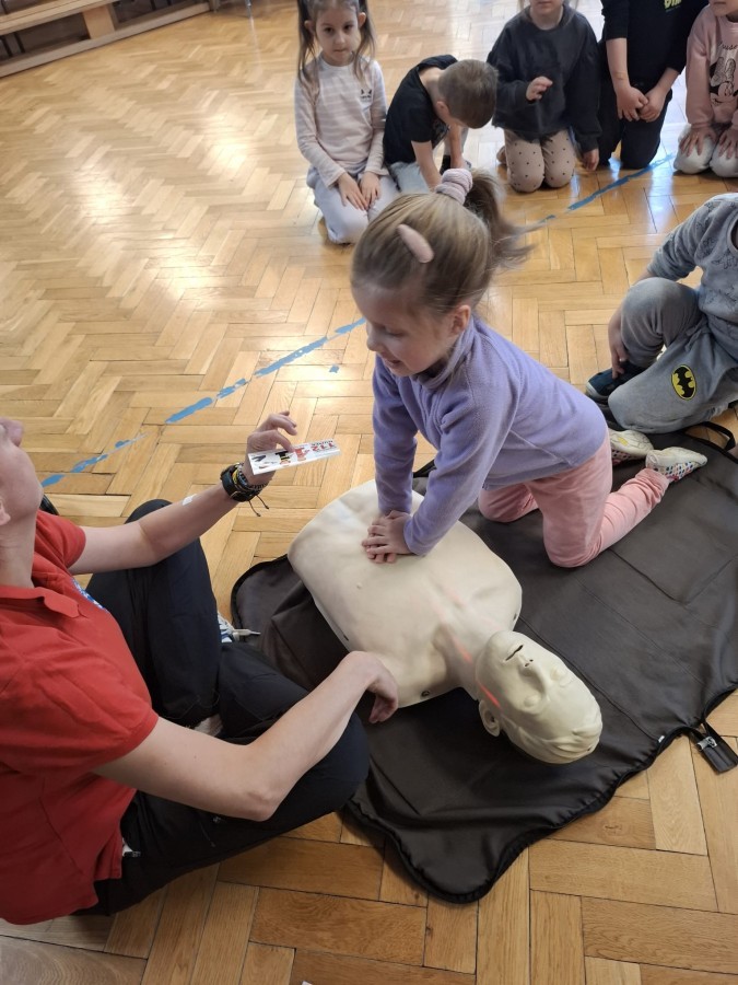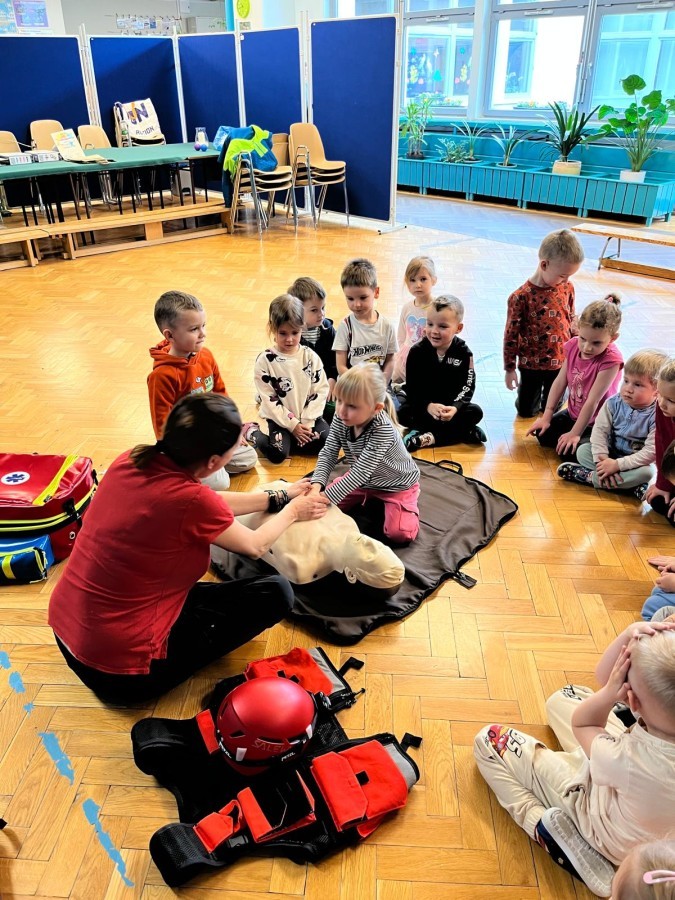 16 i 17 marca mieliśmy okazję gościć fachowców z firmy Polskie Centrum Dogoterapii FORGET ME NOT Psia Edukacja z Czechowic - Dziedzic. Ratownicy uczyli dzieci zasad pierwszej pomocy, jak reagować w sytuacjach zagrażających zdrowiu i życiu, jakie służby udzielą nam pomocy, jaki sprzęt znajduje się w apteczce ratownika medycznego oraz resuscytacji krążeniowo-oddechowej na fantomie.