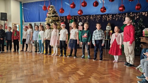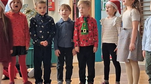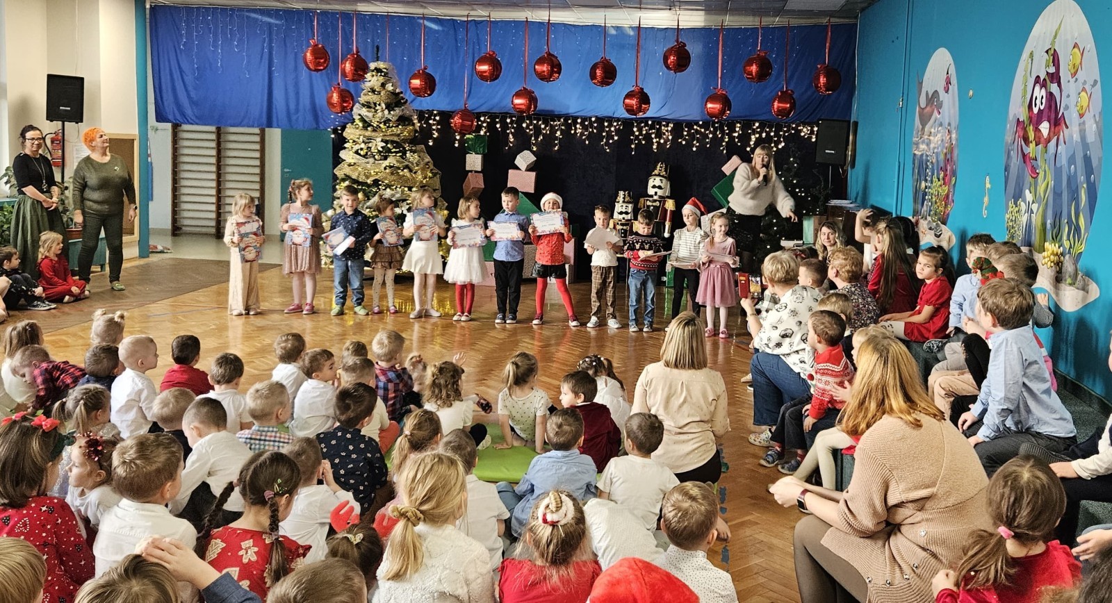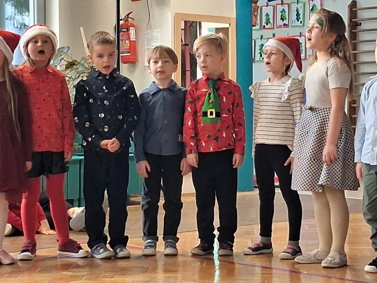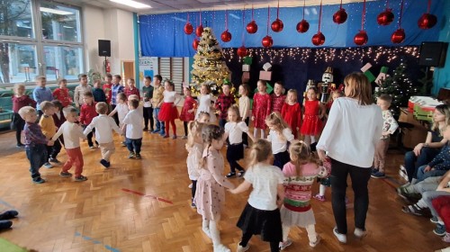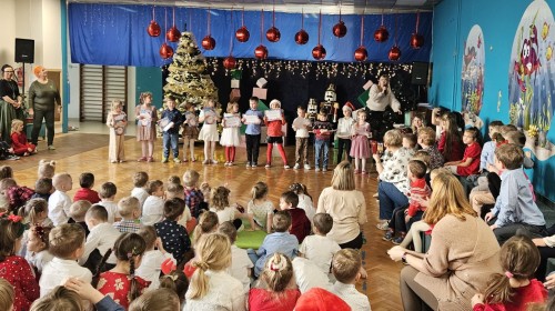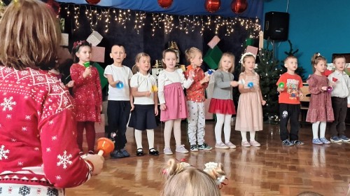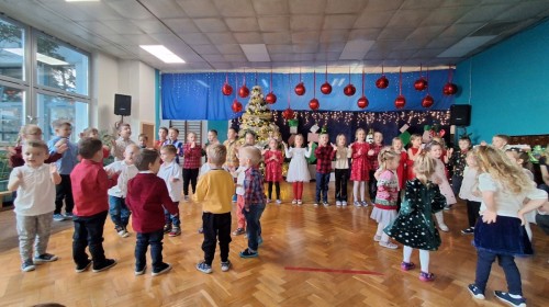 W piątek, 19 grudnia w naszej przedszkolnej sali gimnastycznej, zabrzmiały kolędy i pastorałki. Każda z grup przygotowała własną interpretację znanych polskich kolęd i pastorałek, nie zabrakło także świątecznych piosenek. Na koniec wspólnie zaśpiewaliśmy "Przybieżeli do Betlejem" oraz wysłuchaliśmy życzeń od naszych Pań Dyrektorek, co wprowadziło wszystkich w miły świąteczny nastrój.
