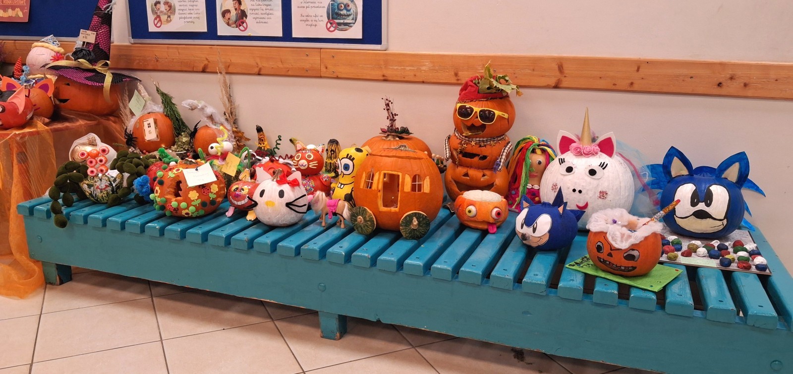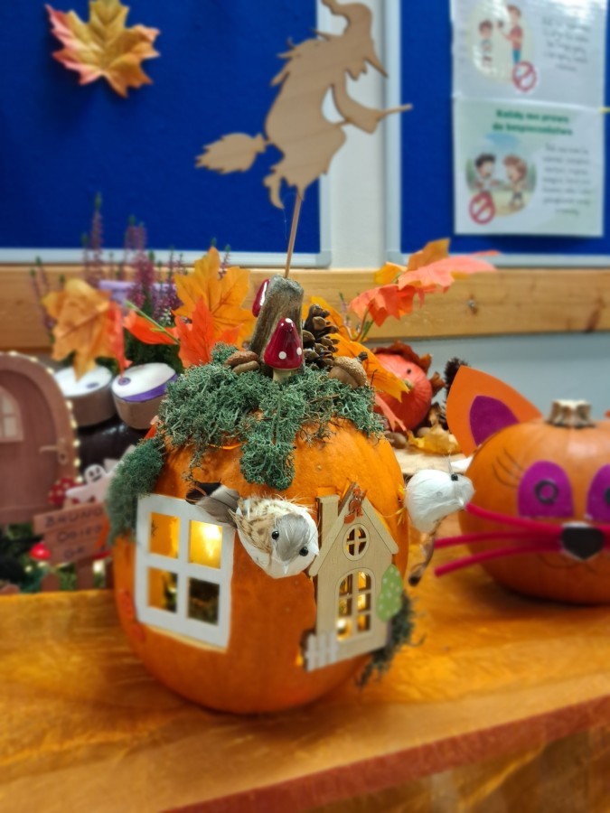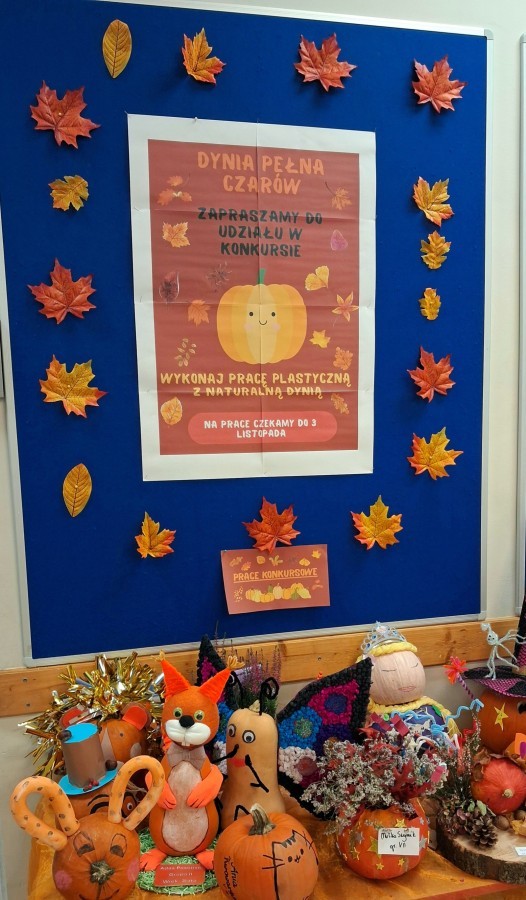Z radością i podziwem przedstawiamy wyniki konkursu plastycznego pt.: "Dynia pełna czarów", którego celem było rozwijanie kreatywności i wyobraźni dzieci, wzmacnianie więzi rodzinnych poprzez wspólne, twórcze działanie dzieci i rodziców, rozwijanie wrażliwości estetycznej oraz umiejętności wyrażania siebie poprzez sztukę, a także promowanie tradycji jesiennych i radości płynącej ze wspólnego świętowania tej pory roku. Nasz korytarz upiększyło aż 46 dyń, każda wyjątkowa i niepowtarzalna.