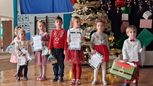 Serdecznie dziękujemy wszystkim dzieciom i ich rodzicom, którzy wspólnie przygotowali świąteczne kartki do III edycji konkursu plastycznego "Kartka od serca". Każdy przedszkolak biorący udział w konkursie został nagrodzony, a nagrody wręczone zostały podczas wspólnego kolędowania. Wszystkie kartki konkursowe powędrują w przyszłym roku do seniorów, byłych pracowników naszego przedszkola.
